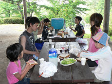 朝食後、みんなでスイカ割りをやりました!