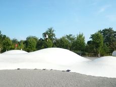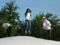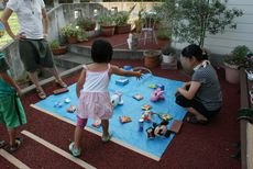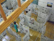 ↑新聞紙をぶら下げて作った『巨大迷路』! ゴールまであっちに行ったり、こっちに来たり! 子どもより大人の方が迷ってました。