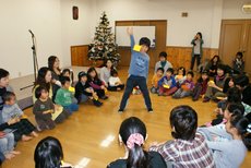 毎年恒例の日曜学校の『クリスマス会』。 今年もたくさんのお友だちが来てくれました! ←クリスマスのお話。 ↓みんなで『じゃんけん列車ゲーム』や『フルーツ・バスケット』を楽しみました!