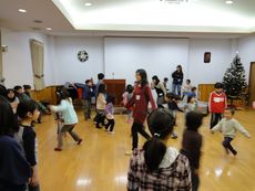 日曜学校の『クリスマス会』。 今年もたくさんのお友だちが来てくれました! ↓みんなで『シッポ取りゲーム』をしました!