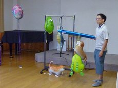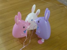 ↑ヘリウムガスで絶妙に浮いて揺れている動物ふうせんはまるで生きているペットのよう!
