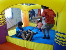 ←↑室内では『ふわふわトランポリン』と『ふうせん的当て』を実施。