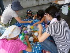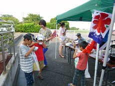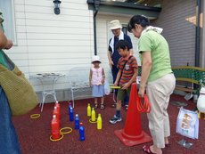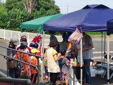 最高気温35度を超える猛暑の中、たくさんの方が来てくださいました。ふわふわトランポリン、かき氷、フランクフルト、ヤキソバ、ポップコーン、冷やし野菜、ヨーヨーつり、スーパーボールすくい、わなげ、ふうせん的当て、おかしのつかみ取り…などを楽しみました!