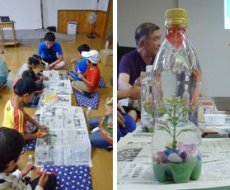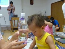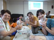 3時〜4時にはペットボトルを使って『ミニ水族館』を作りました!ペットボトルの側面を押すと魚の模型が沈み、離すと浮く…不思議なミニ水族館。『パスカルの原理』を勉強できて夏休みの自由研究に持って来いでした!