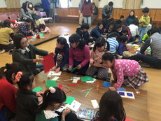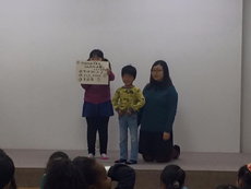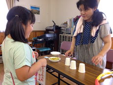 ←コインが1枚入ってる紙コップ、2枚入っている紙コップ、3枚入っている紙コップを右へ左へとシャッフルしてどれか一つを選んでもらうゲーム。ほとんどの人が3枚入った紙コップを当てました!