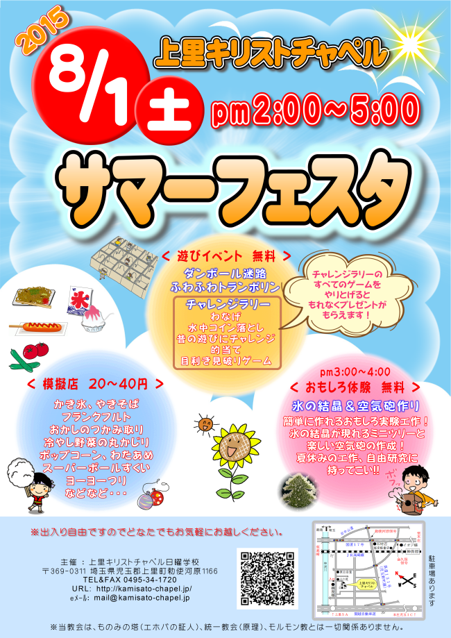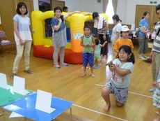 今年は気温37度を超える猛暑の中、たくさんの人が来てくださり、過去最多の来場者となりました。チャレンジラリー、ダンボール迷路、ふわふわトランポリン、かき氷、フランクフルト、焼きそば、わたあめ、ポップコーン、冷やし野菜、ヨーヨーつり、スーパーボールすくい、おかしのつかみ取り…などなど盛りだくさんの内容を楽しみました!
