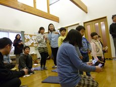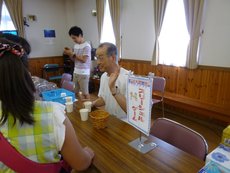 ←コインが1枚入ってる紙コップ、2枚入っている紙コップ、3枚入っている紙コップを右へ左へとシャッフルしてどれか一つを選んでもらうゲーム。ほとんどの人が3枚入った紙コップを当てました!
