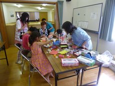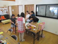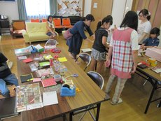 今年は工作の時間帯は設けず、いつでも好きな時に自由に工作できるようにしました。『万華鏡』とダンボールを使った『空気砲』を作りました!
