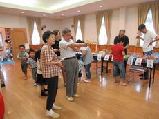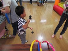 『けん玉』、『フラフープ』、『ダルマ落とし』の昔のおもちゃにチャレンジ。ちびっ子たちには新鮮だったようです!