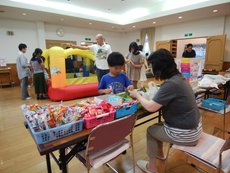 今年はあいにくの雨天でしたが、たくさんの人が来てくださいました。チャレンジラリー、ふわふわトランポリン、かき氷、フランクフルト、焼きそば、わたがし、冷やし野菜、スーパーボールすくい、工作…などなど盛りだくさんの内容を楽しみました!